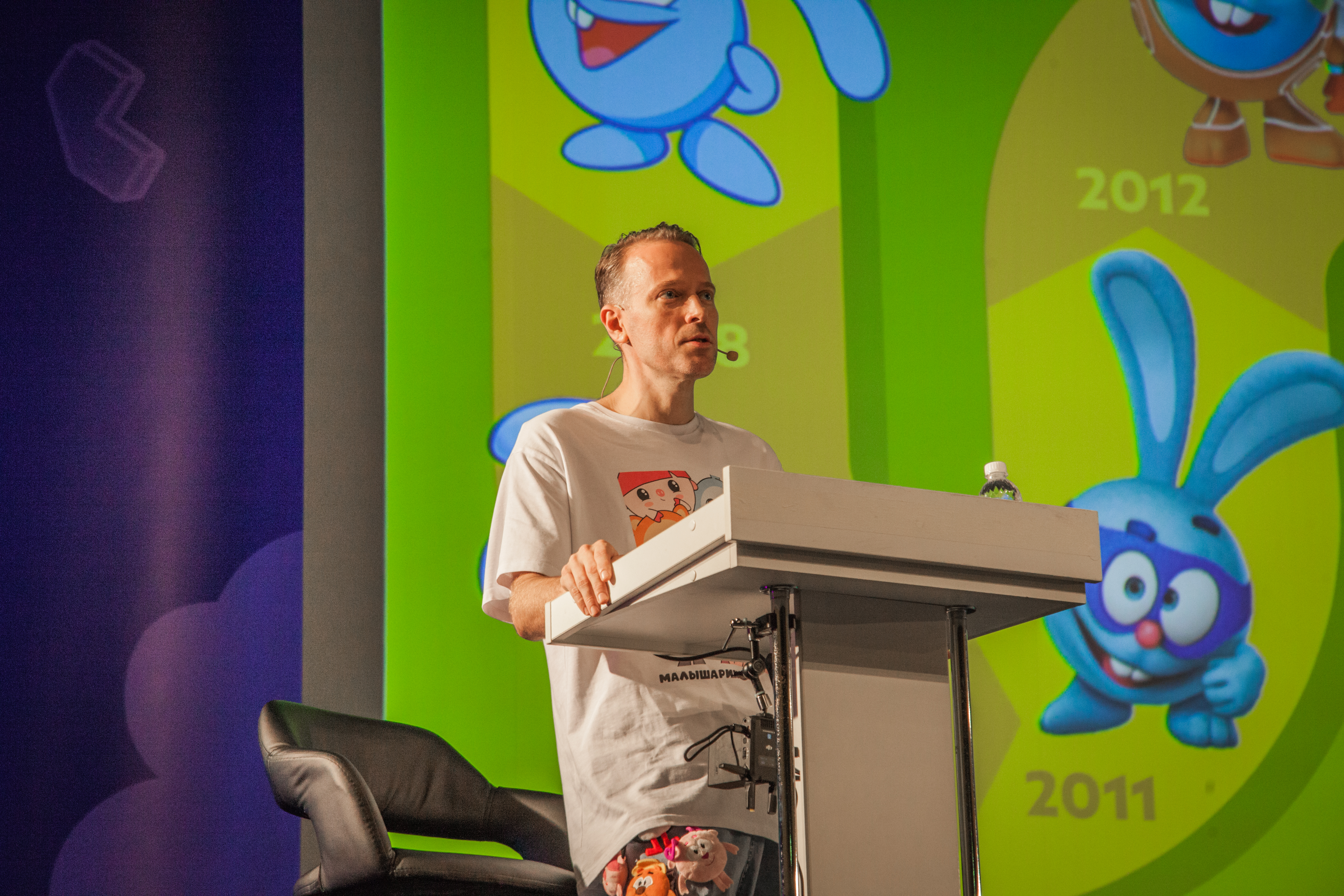 Завершил программу лекций Денис Всесвятский, директор творческого объединения «Что надо» в СТС Медиа и экс-директор телеканала 2х2. Спикер представил «хулиганские» приемы по продвижению анимационных проектов и ингредиенты философии для представителей творческих профессий.