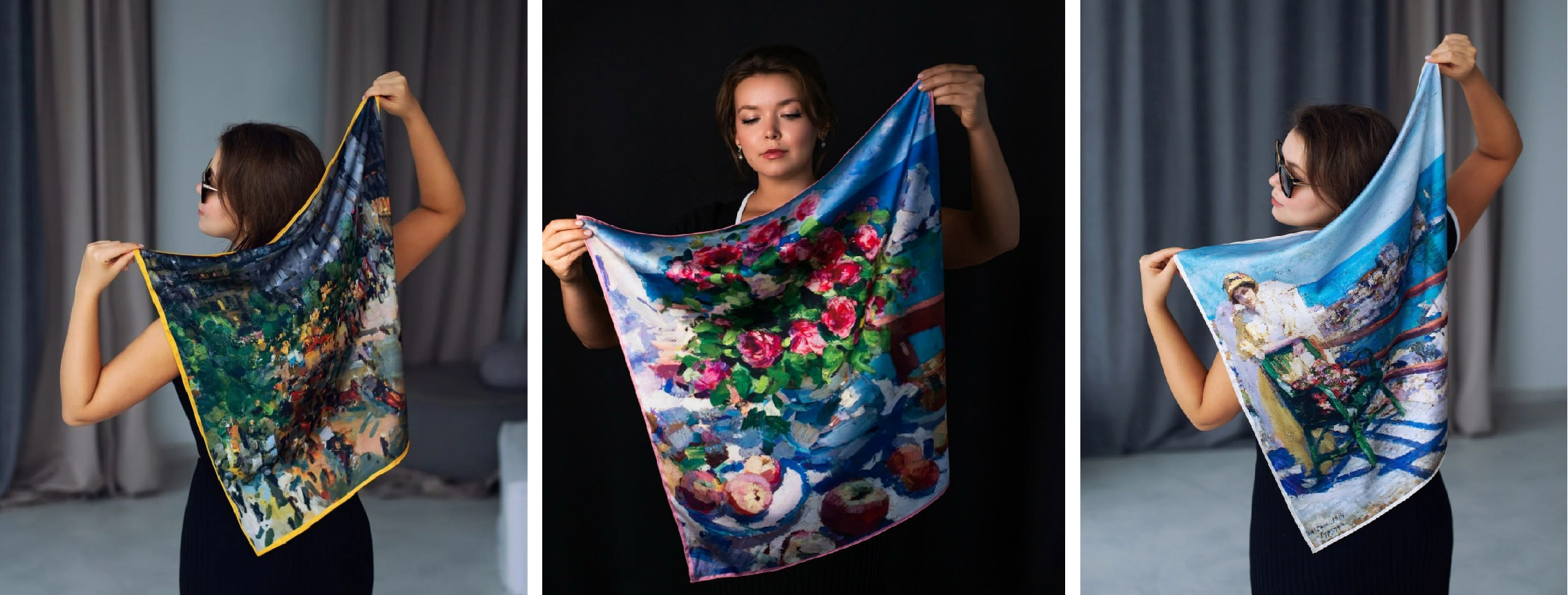 Музей Константина Коровина (Гурзуф) выпустил платки с работами художника. В серию пошли платки «Розы и яблоки», «Париж» и «Гурзуф».