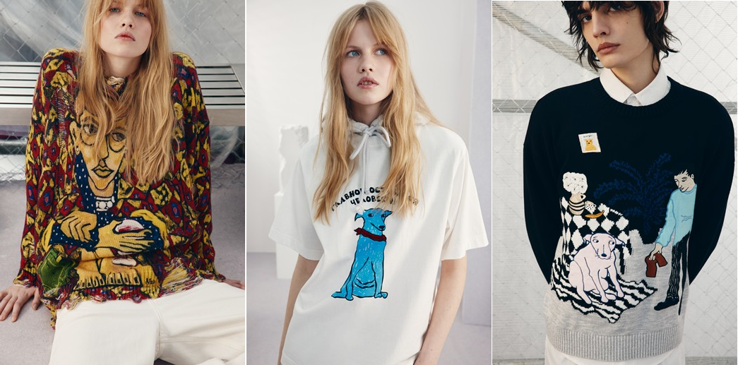 В коллекции представлены свитеры, кардиганы и аксессуары. Детали: объемная вышивка, бахрома, пушистая вязка, принты с изображением собак и других героев художника, а также мемные фразы Данила: «Если балуешься – балуйся профессионально» и «Главное – оставайся человеком».