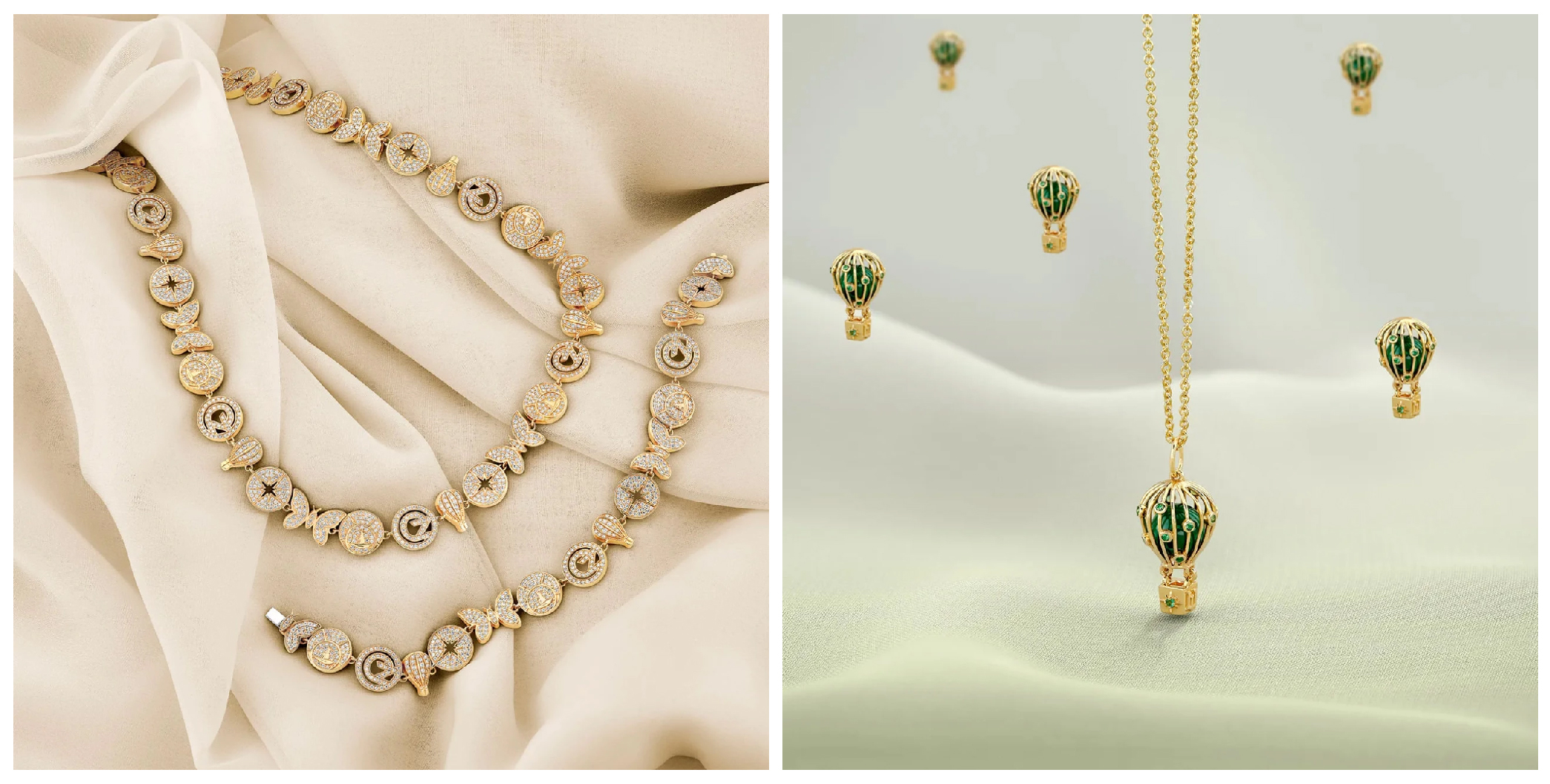Капсула включает около 30 ювелирных изделий – в том числе браслеты, ожерелья, кольца и серьги – из 14-каратного золота, украшенных бриллиантами, изумрудами, розовыми сапфирами и аметистами. Особенностями коллекции стали кулон в виде воздушного шара и медальон-звезда с гравировкой There’s Magic Yet to Come.