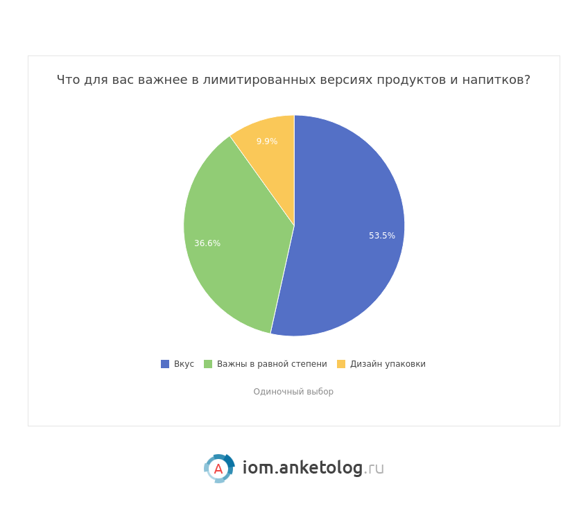 Для половины (54%) в лимитированных продуктах питания важнее вкус, против дизайна (10%). А для трети (36%) и вкус, и оформление важны в равной степени.