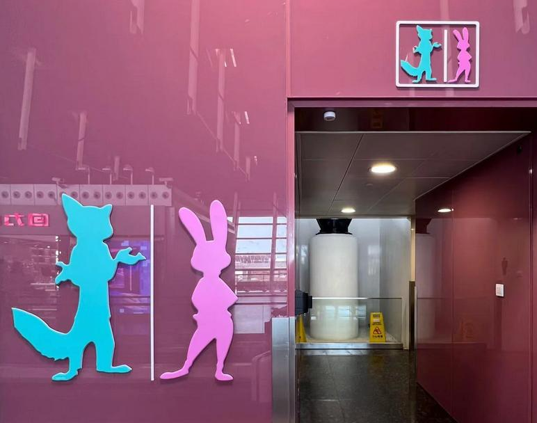 Кроме того, преобразился и сам аэропорт Шанхай Пудун. Например, Ник и Джуди заменили традиционные обозначения для мужского и женского туалета. Там же разместили дверцу в уборную для маленьких животных – такие были в «Зверополисе».