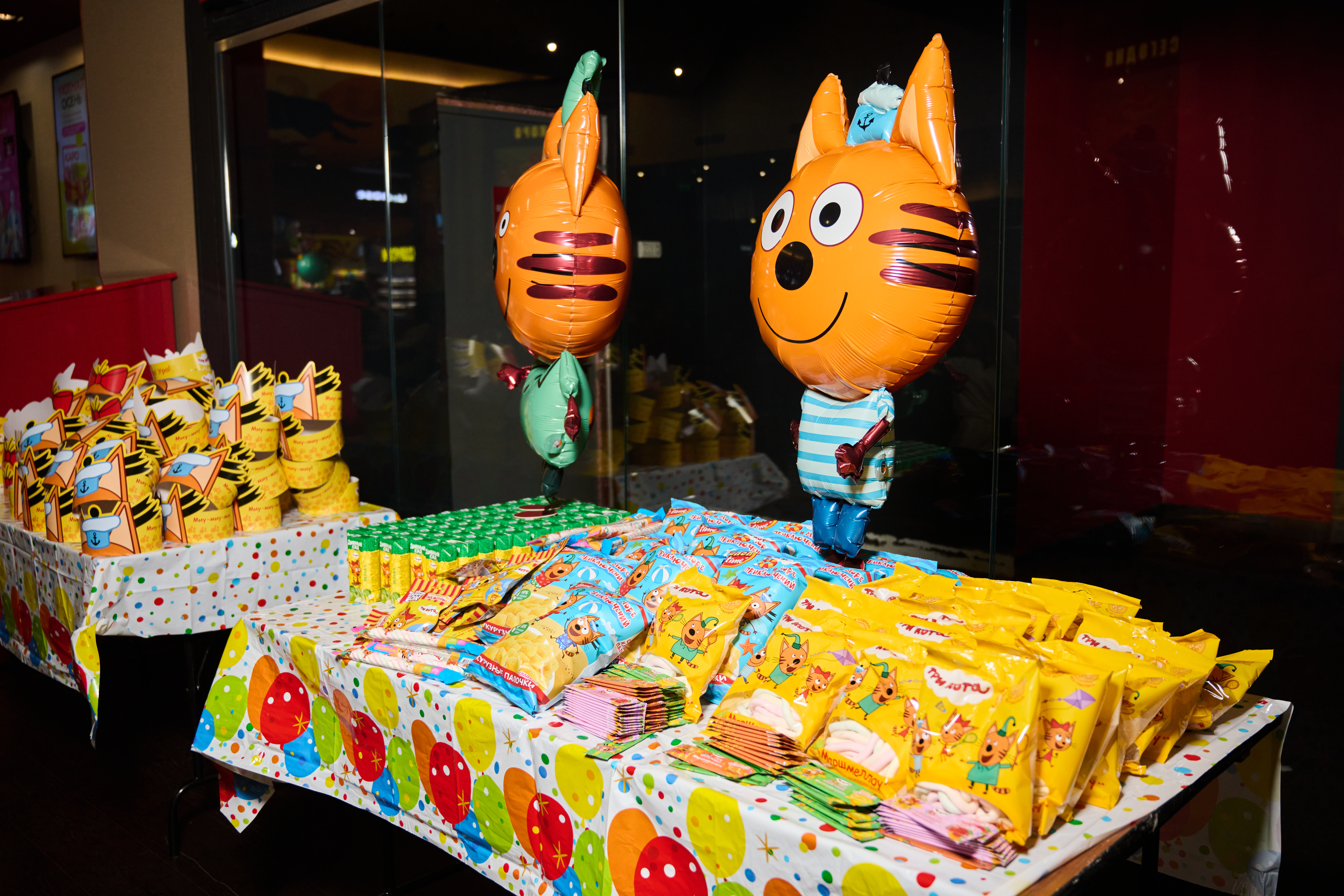 6 декабря в кинотеатре «КАРО Sky 17 Авиапарк» прошла премьера нового анимационного спецвыпуска «Три Кота. Путешествие во времени». Он посвящен десятилетнему юбилею популярной франшизы СТС. Дистрибьютор проекта – «НМГ Кинопрокат» (входит в холдинг «Национальная Медиа Группа»). Производство – «Студия Метрафильмс». В кинотеатрах анимационную ленту можно будет посмотреть уже с 11 декабря.