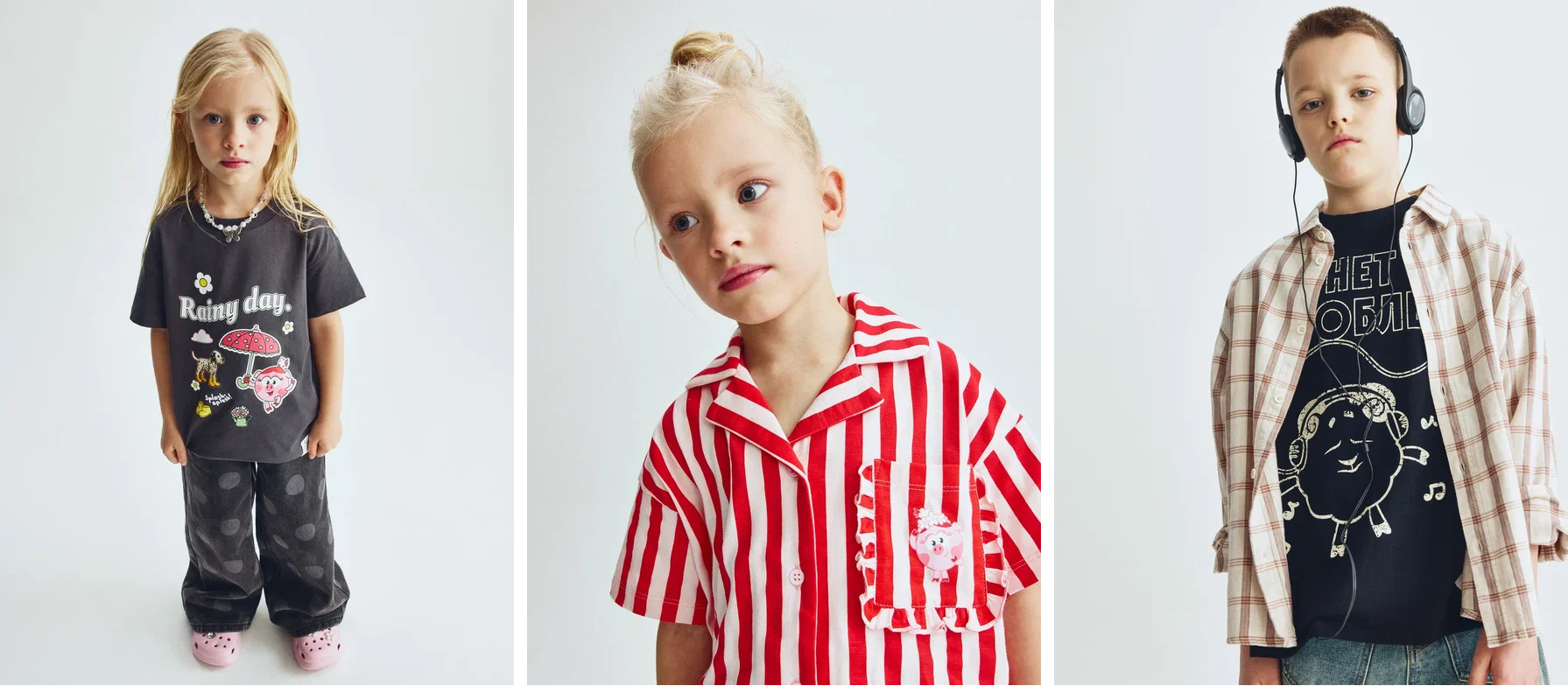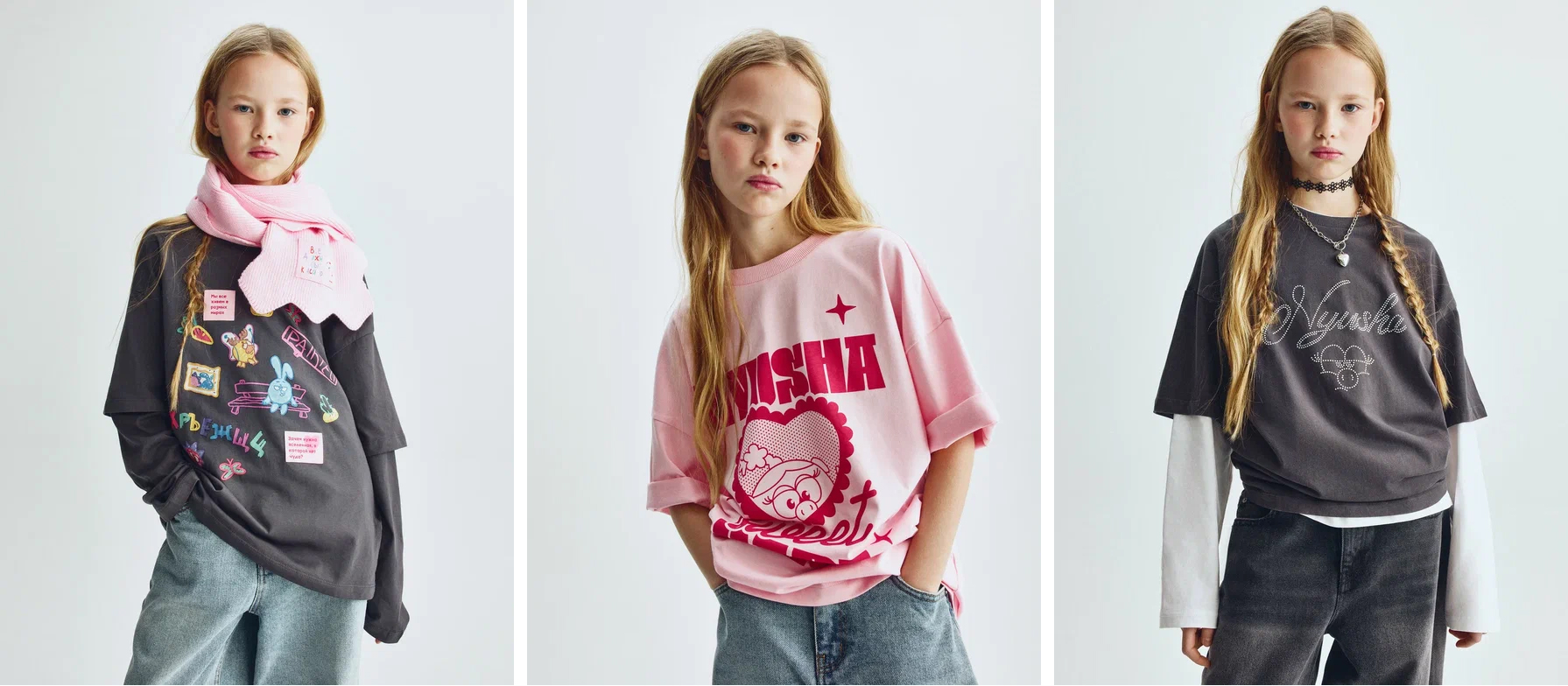 Любимые взрослыми и детьми герои – Нюша, Крош, Бараш, Ежик, Копатыч, Пин, Кар-Карыч и другие – стали вдохновением для новой коллаборации. Их образы легли в основу ярких принтов и стилистических решений коллекции.