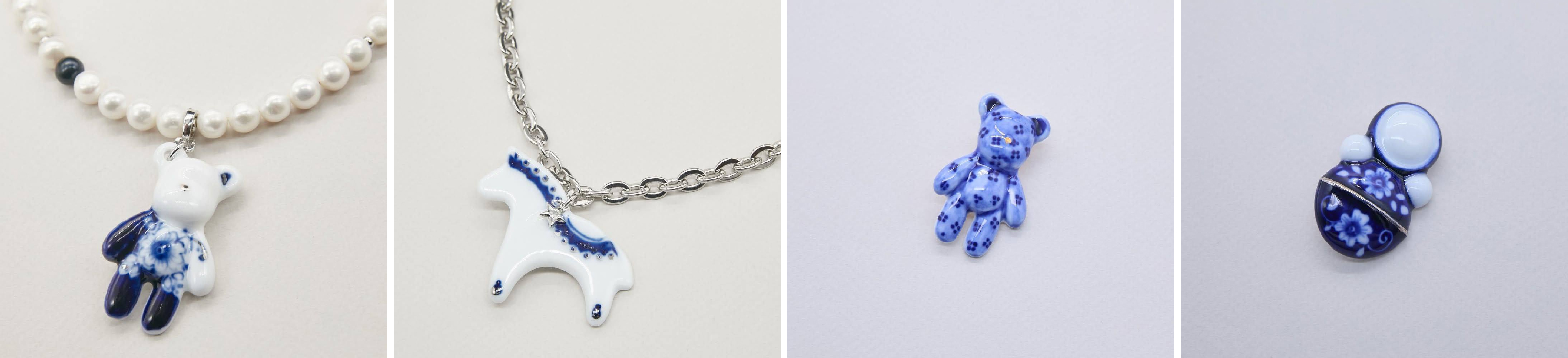 Броши и кулоны сделали в трех формах: медвежата, лошадки и неваляшки. Коллаб с Buylerika Ceramic собирали больше полугода. Гжель отвечает за форму, ювелиры – за золото и платину. Старт продаж с 12 декабря. Цены от 10 до 40 тысяч, все упирается в роспись и фурнитуру.