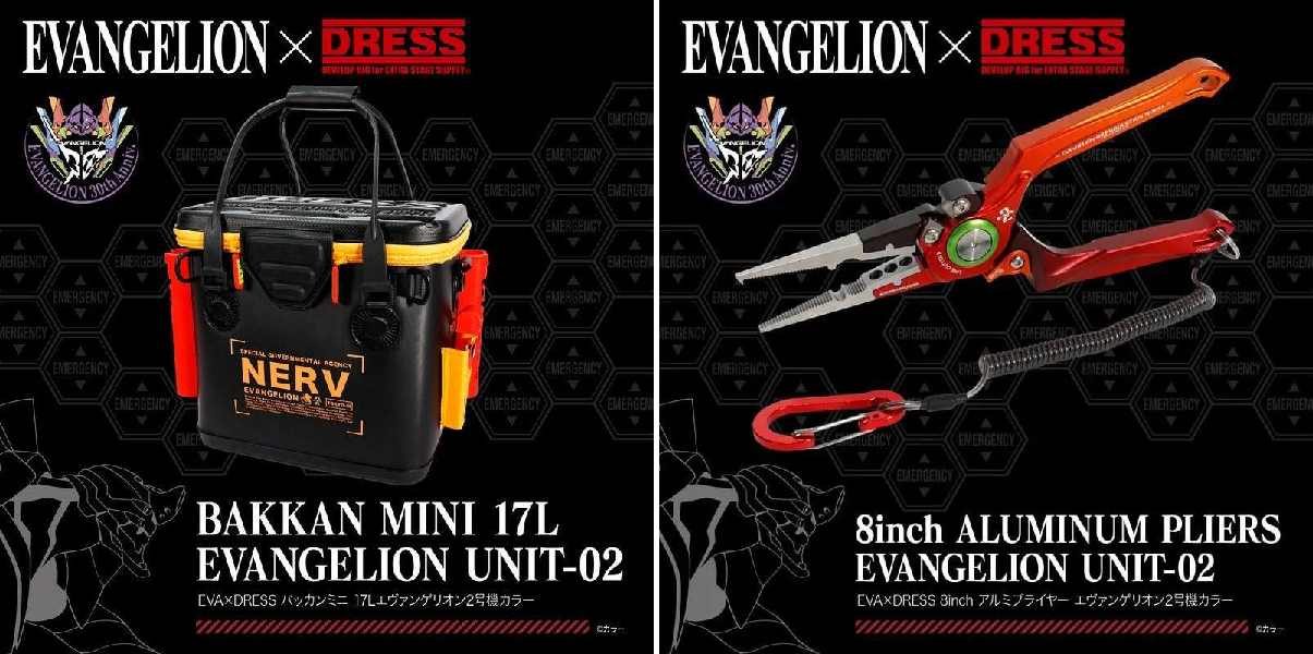Производитель снаряжения для рыбалки Dress показал целую коллекцию по аниме, в которую вошли приманки, джиги и плоскогубцы в дизайне модулей и ангелов, а также 17-литровое ведро для переноса улова в цветах Евы-02.