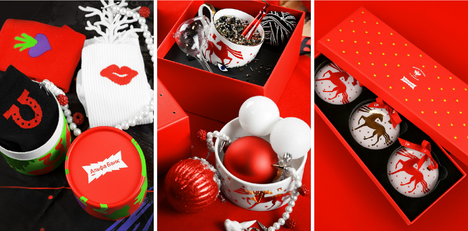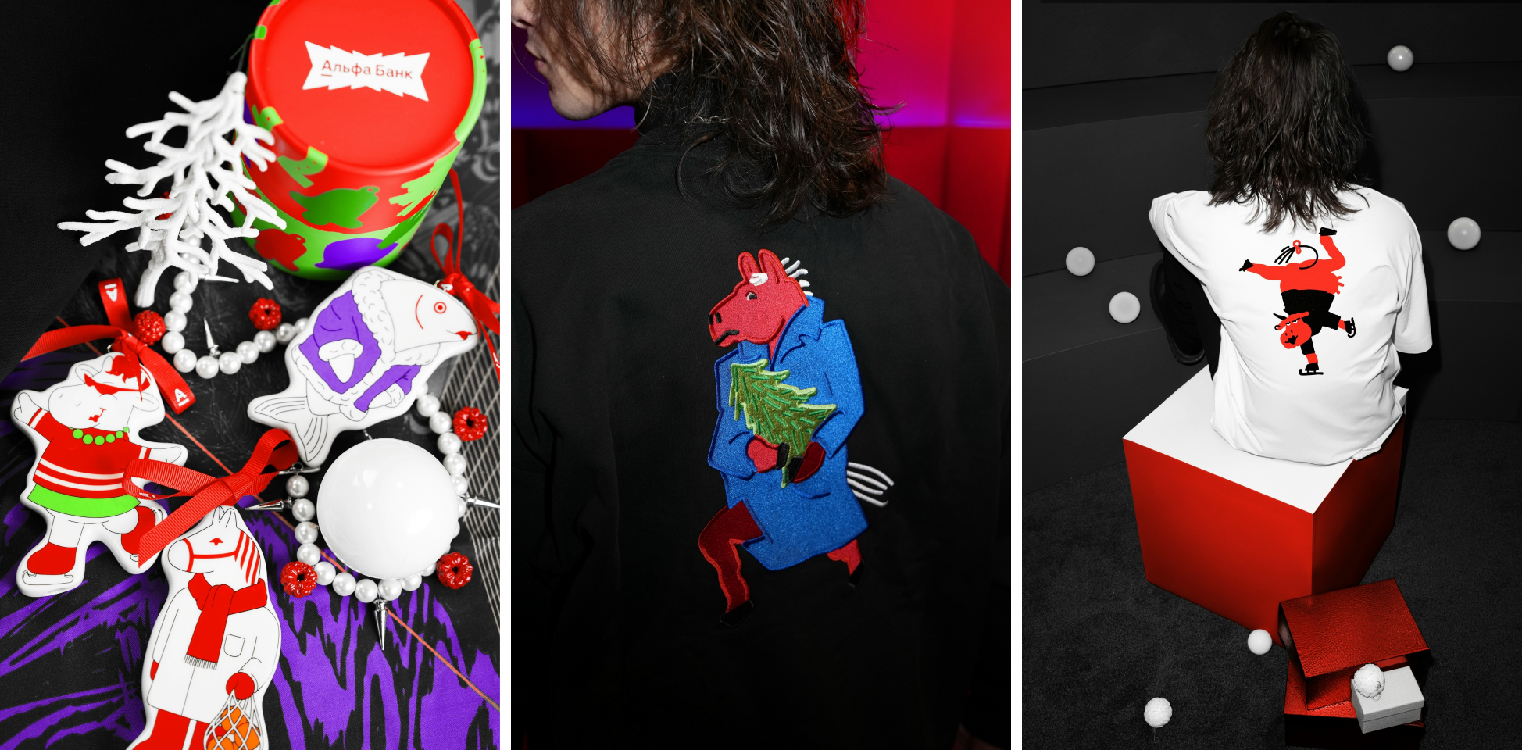 Альфа-Банк представил новогоднюю капсульную коллекцию мерча, вдохновленную разговорными выражениями – «конь в пальто», «корова на льду» и «селедка под шубой».