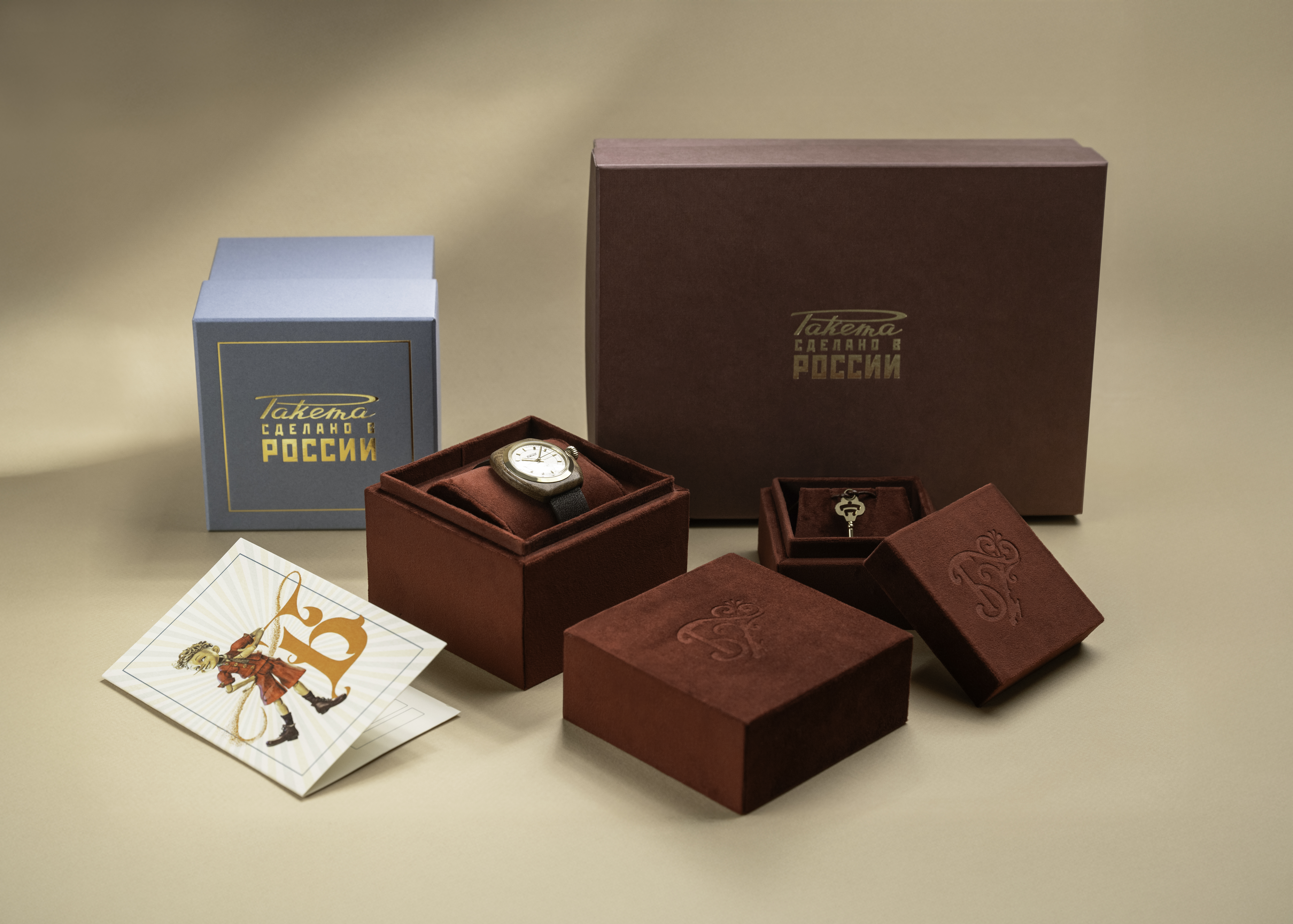 Связь с «Буратино» подчеркивается в корпусе часов, выполненном из натурального орехового дерева. Модель уникальной лимитированной коллекции является переосмыслением редких часов «Ракета» с деревянным корпусом, выпускавшихся в ХХ веке. Ключевая деталь фильма о приключения деревянного мальчика – золотой ключик – также получил переосмысление в специальной коллекционной серии часов. Ключик стал неотделимой частью самих часов, благодаря которому можно самостоятельно завести часовой механизм.