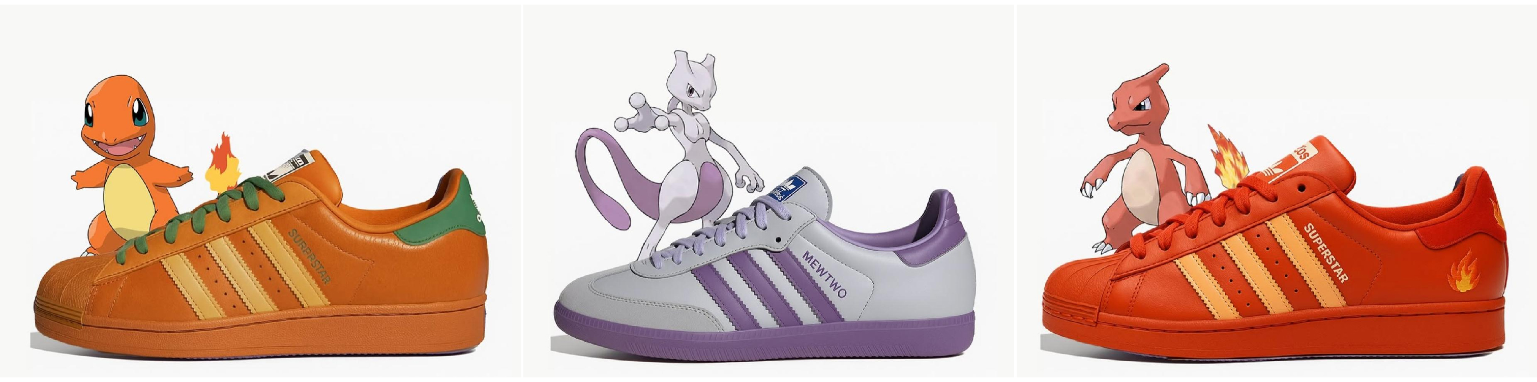 Пикачу, как самый узнаваемый персонаж, получит две модели Superstar. Две другие пары будут посвящены Чармелеону и Чармандеру. Samba OG выйдут в лавандовом цвете и будут посвящены одному из самых сильных покемонов – Мьюту.