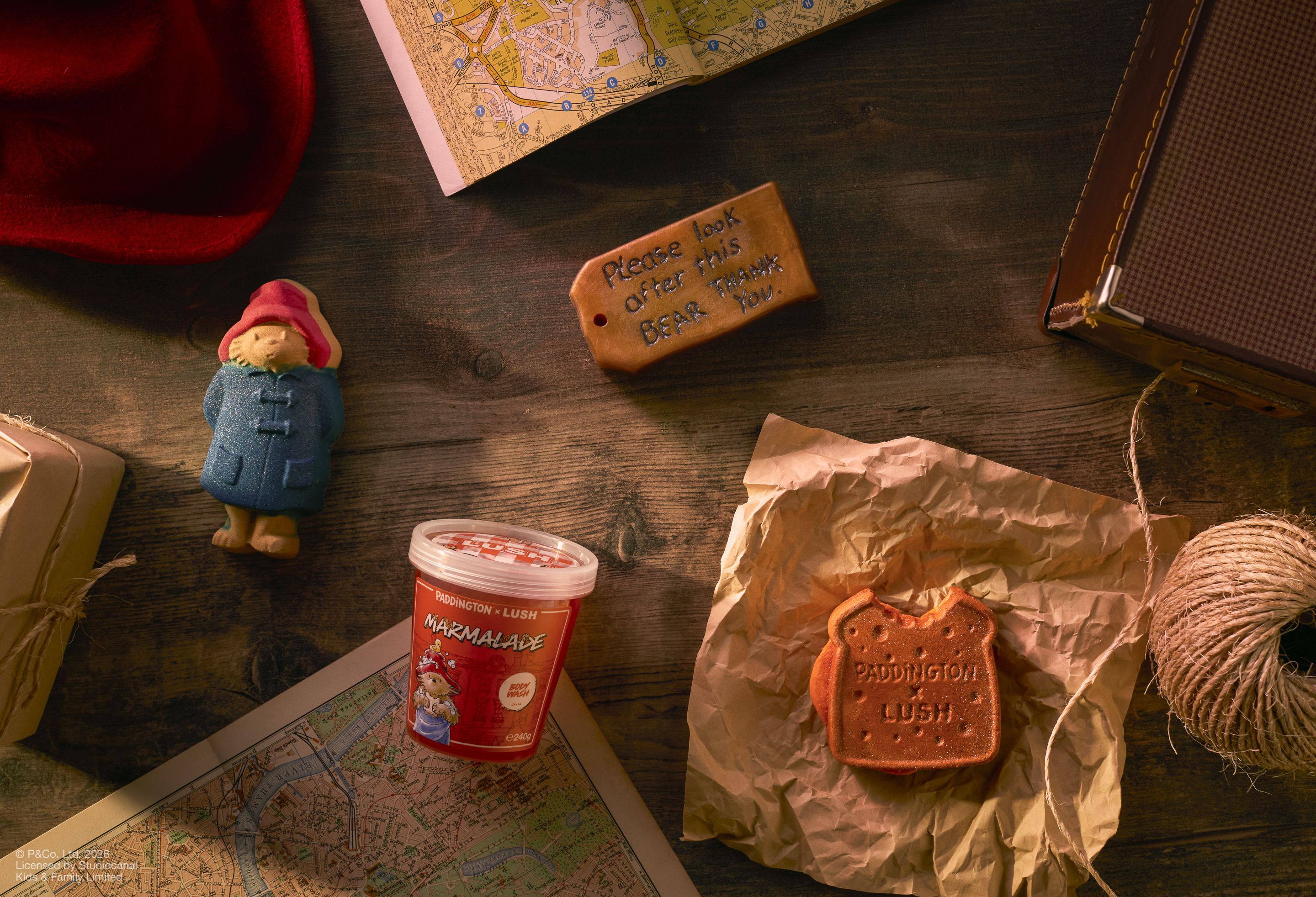 Коллаборация целиком посвящена обаятельному медвежонку. В линию вошли бомбочки для ванны, на которых специализируется Lush: фигурка самого Паддингтона в синем пальто и любимый поджаренный тост героя. В дополнение к ним выпустят гель для душа с апельсиновым ароматом, напоминающем мармелад. Также бренд создал мыло в форме бирки с трогательной надписью «Пожалуйста, позаботьтесь об этом медвежонке. Спасибо» – такая была прикреплена к одежде Паддингтона, когда он попал в Лондон. Продукты обойдутся фанатам от 7 до 12 евро.