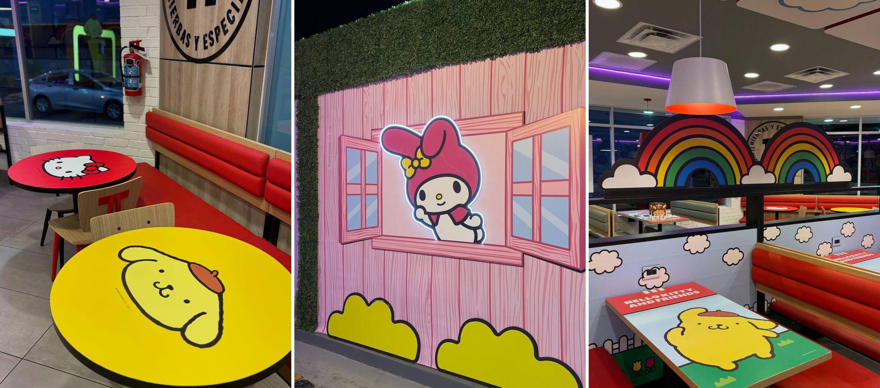 В рамках проекта были изменены как внешний вид, так и интерьер ресторанов: фасады оформлены с использованием образов персонажей, включая Hello Kitty, а внутренние пространства – от стен до зон обслуживания – полностью адаптированы под стилистику коллаборации.