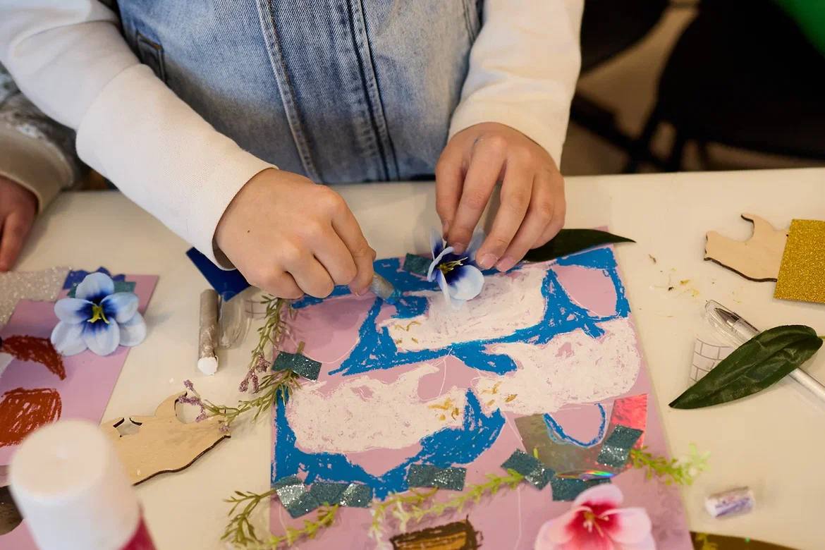 На мастер-классе «Полярная весна» ребята создали поделку с белыми мишками в технике коллажа.