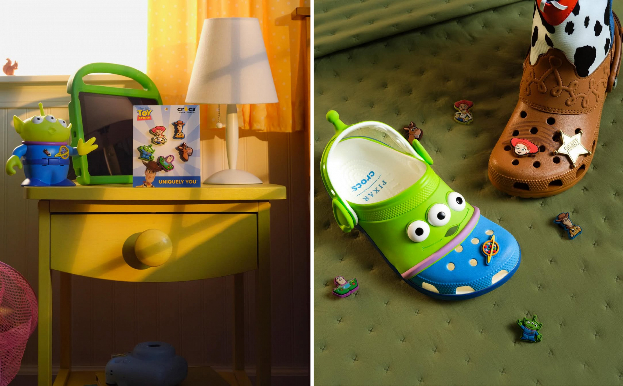 Сапоги Джесси будут стоить 130 долларов, а сабо с инопланетянином – 70 долларов. В комплекте идут тематические джиббитсы с Баззом Лайтером, Вуди, Джесси, значком шерифа и планетой.